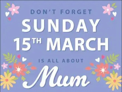 Celebrate Mum this Mother’s Day Sunday 15th March 2026